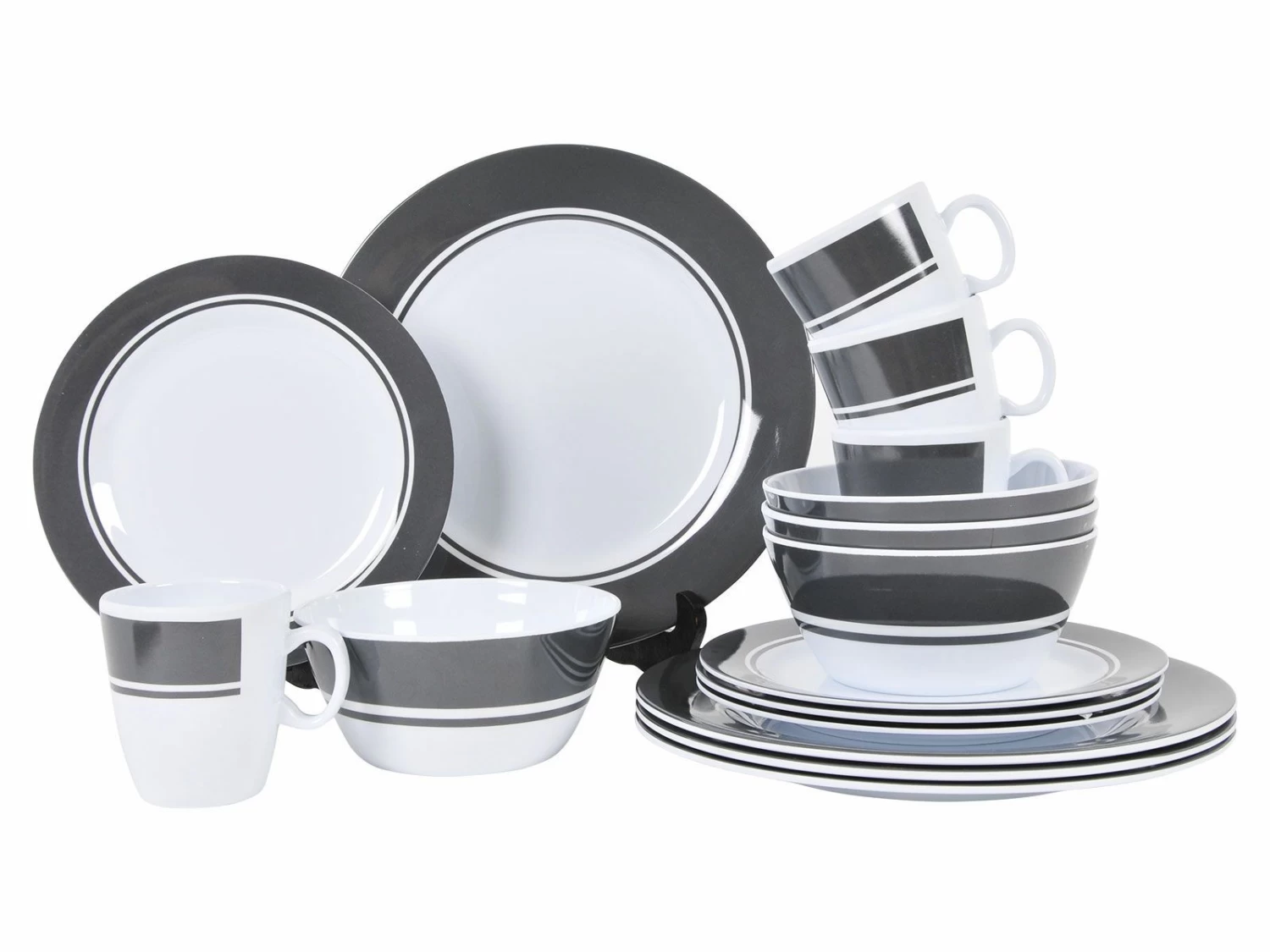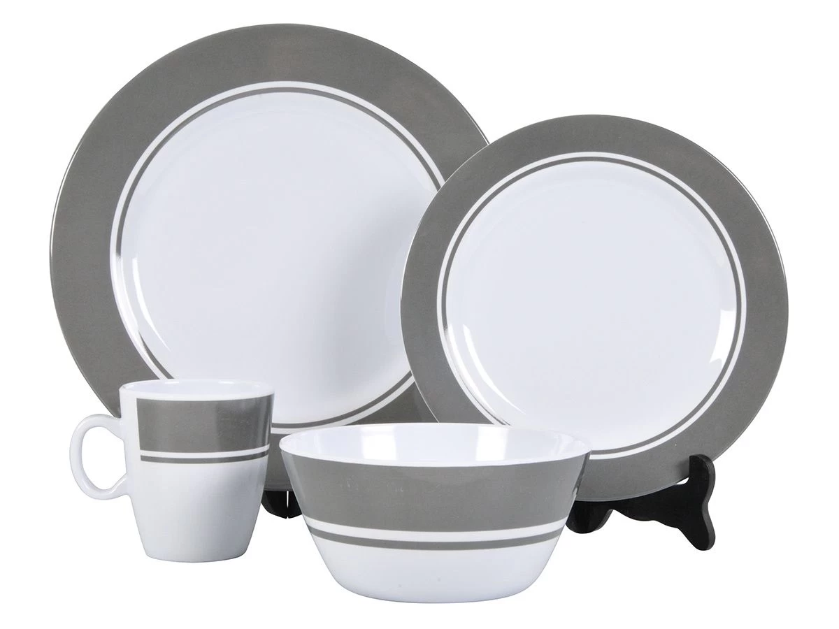 Dit servies is vaatwasmachinebestendig op een lage temperatuur en stootvast dankzij het stevige melamine.