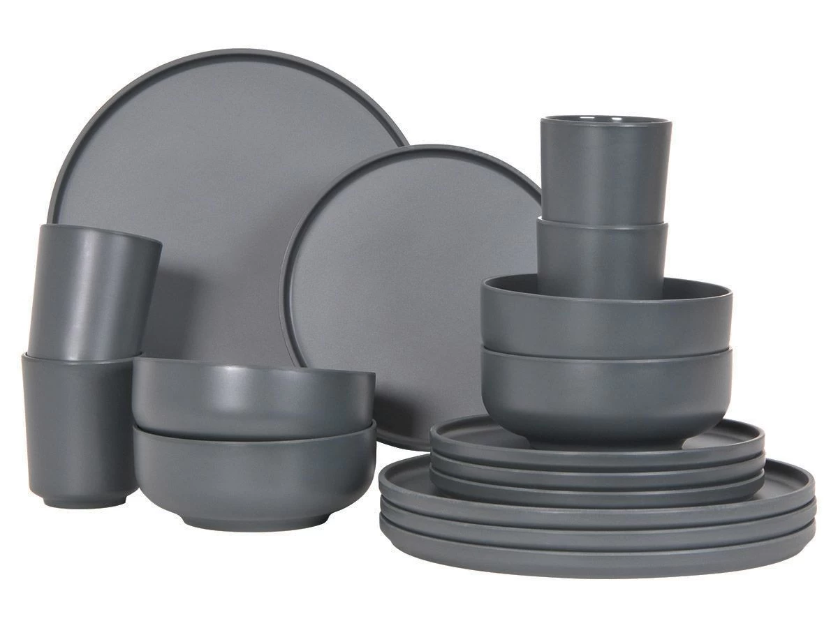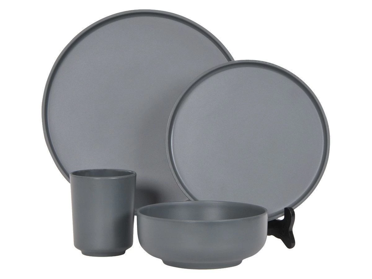Het servies is 100% BPA vrij en bestaat uit 4 dinerborden (Ø 26 cm), 4 ontbijtborden (Ø 20 cm), 4 kommen (Ø 15 cm, 700 ml) en 4 bekers (Ø 8 x 10 cm, 300 ml). Het servies kan een temperatuur hebben tot maximaal 80 graden en is vaatwasmachinebestendig.