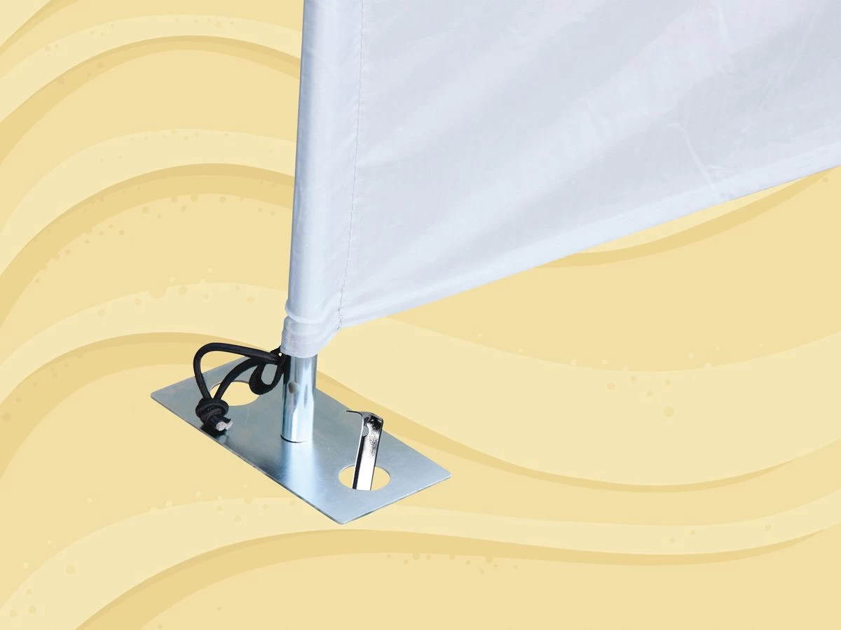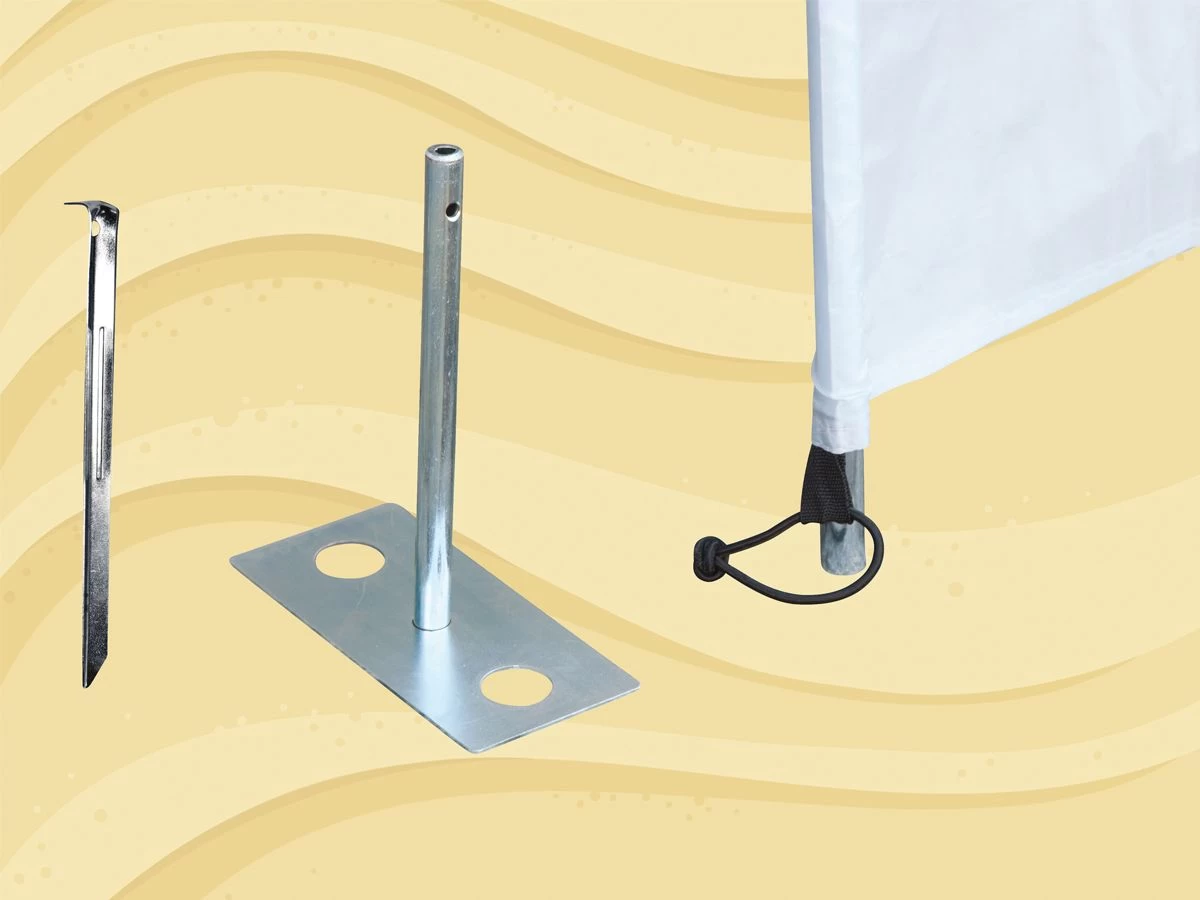 Deze set met windschermharingen maakt het mogelijk om elk windscherm in de grond te verankeren. De windschermstaanders vallen over de stalen pennen. De diameter van de pennen is Ø 12,5 mm. De platen kunnen met extra haringen nog steviger in de grond verankerd worden.