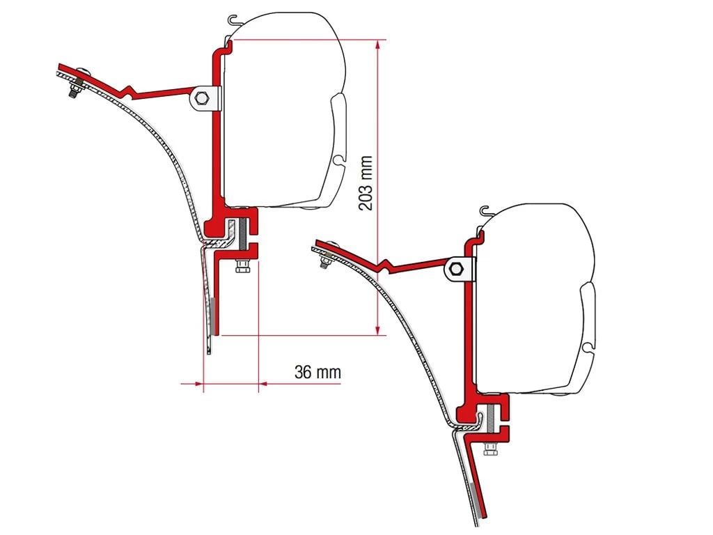 Deze adapter maakt het mogelijk om de Fiamma F45 luifel te bevestigen aan een Peugeot J5, Citroen C25, Fiat Ducato serie I tot 1994, Ford Transit met regengoot of Mercedes Sprinter 208 D KB. De kit bestaat uit 2 beugels van 8 cm. Zowel beugel A als B zijn meegeleverd bij deze set.