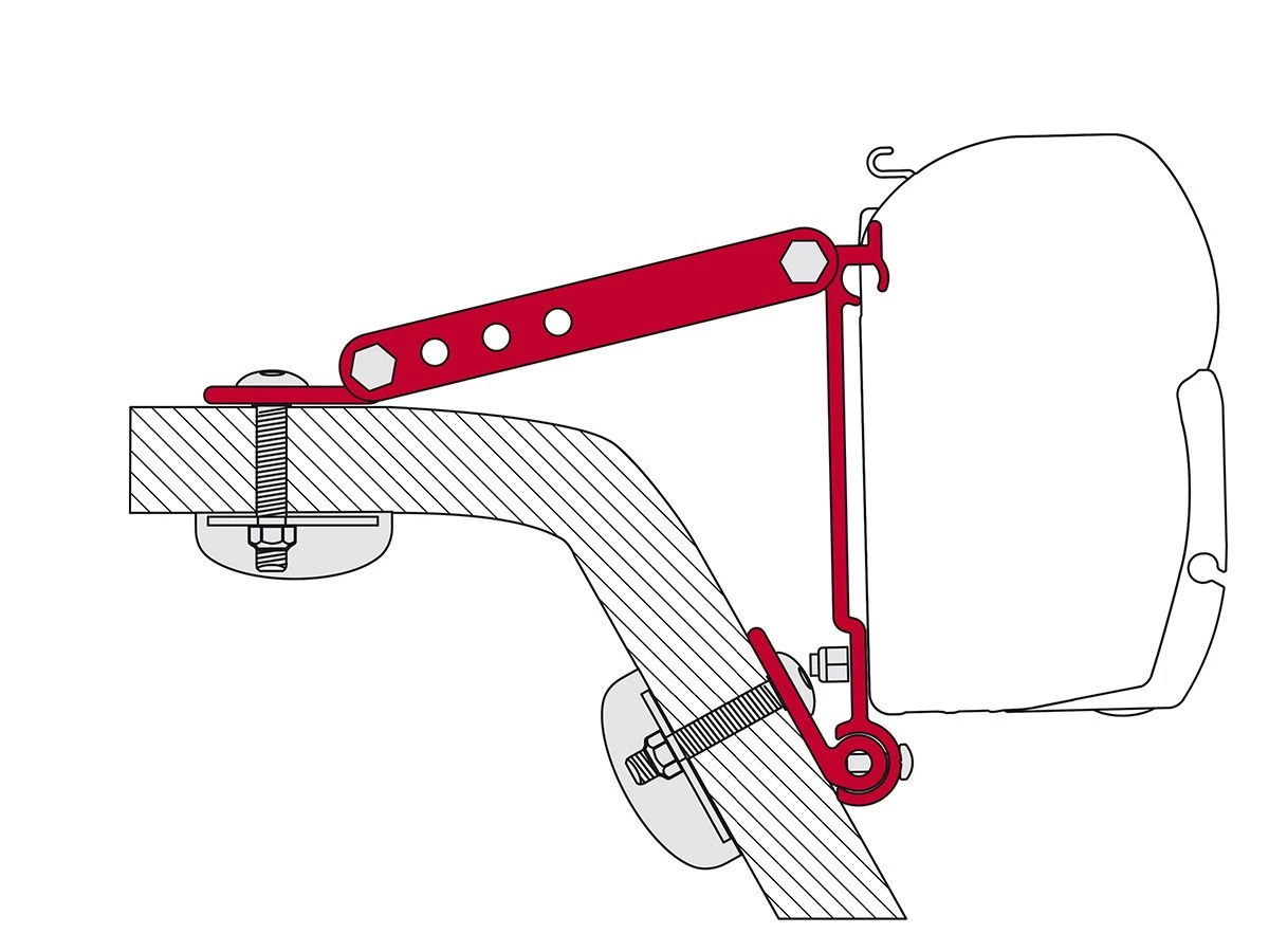 Deze adapter maakt het mogelijk om de Fiamma F45 luifel te bevestigen op de schuine wand van je camper of caravan. De kit bestaat uit 3 beugels van 8 cm.