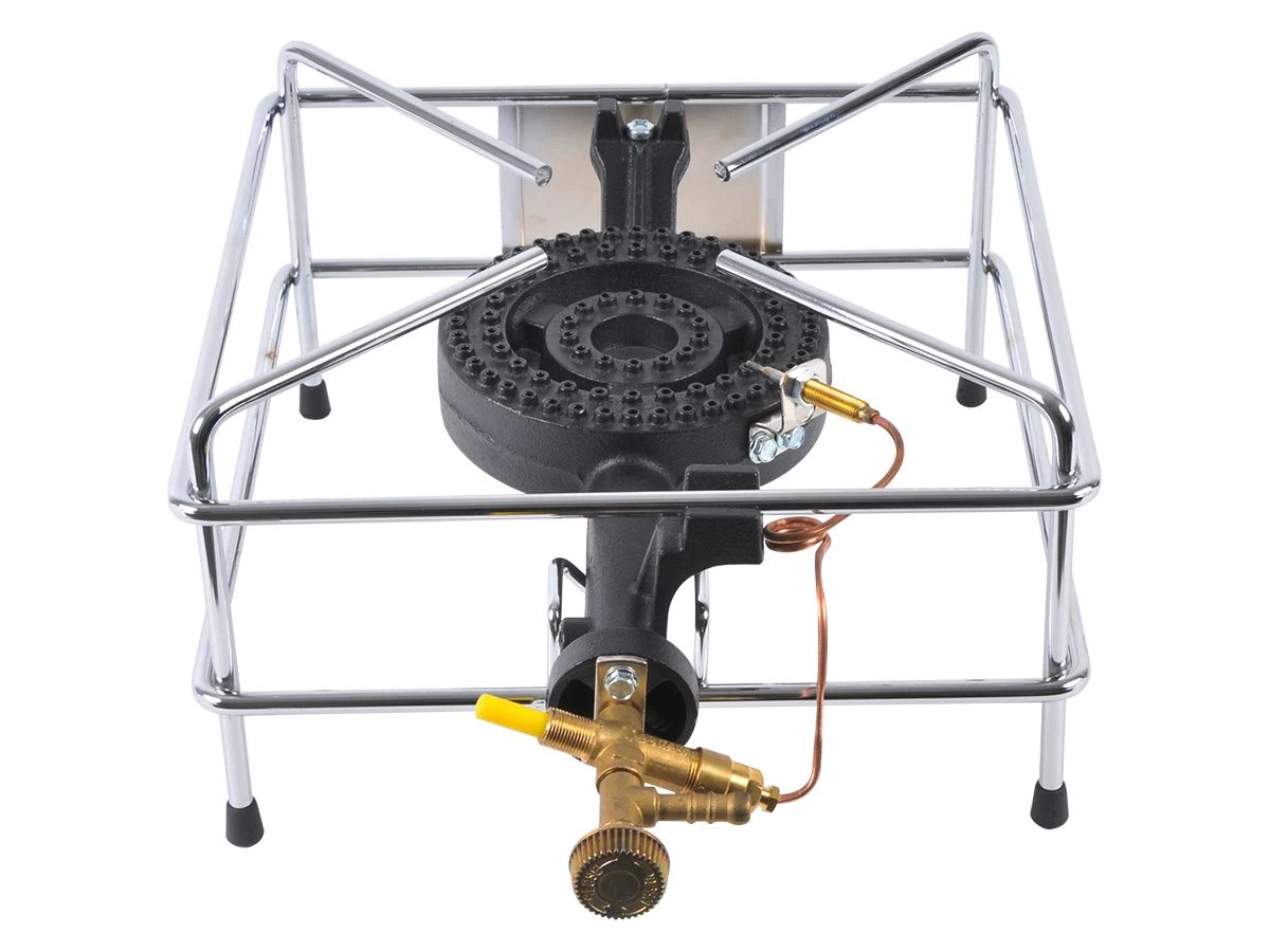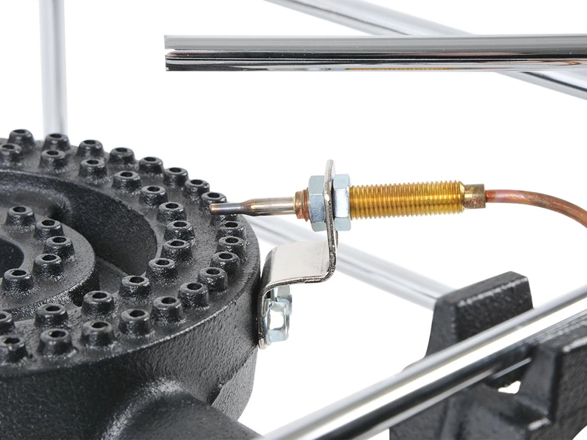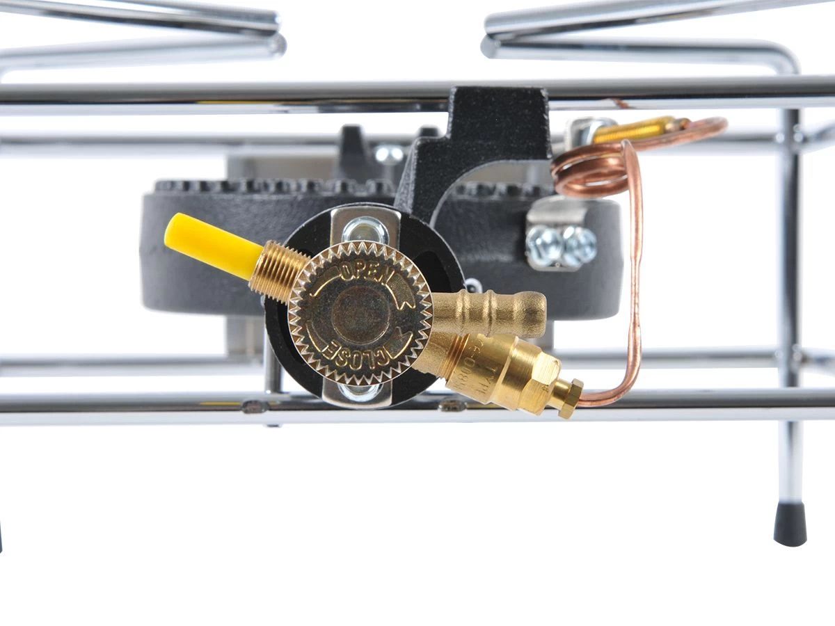 Dit kooktoestel is voorzien van een thermische beveiliging, dit zorgt ervoor dat de gastoevoer vanzelf sluit zodra de vlam dooft of uitwaait. Je kunt het kooktoestel door middel van een slangpilaaraansluiting aansluiten op een 30 mbar propaan of butaan gasfles.