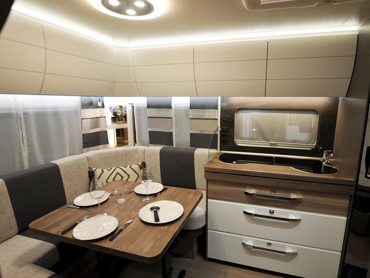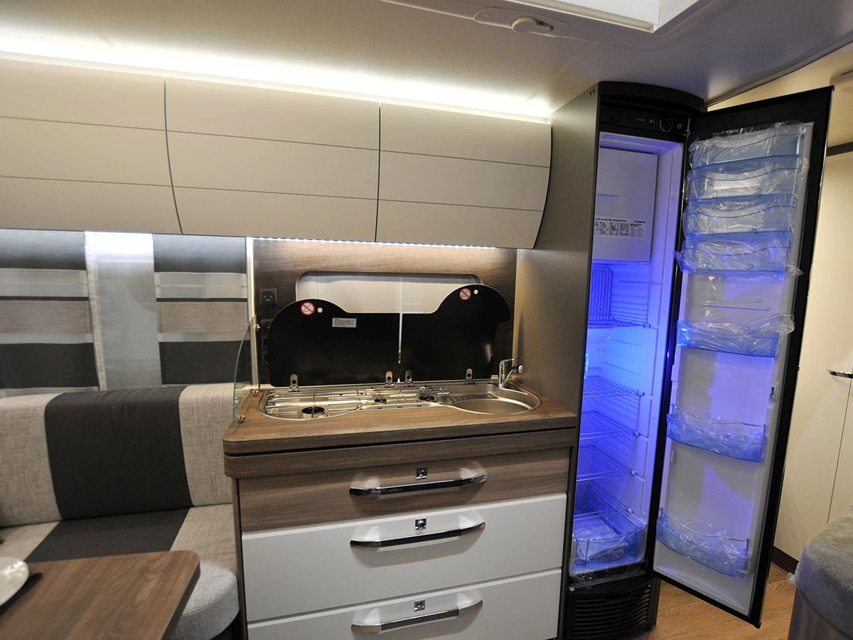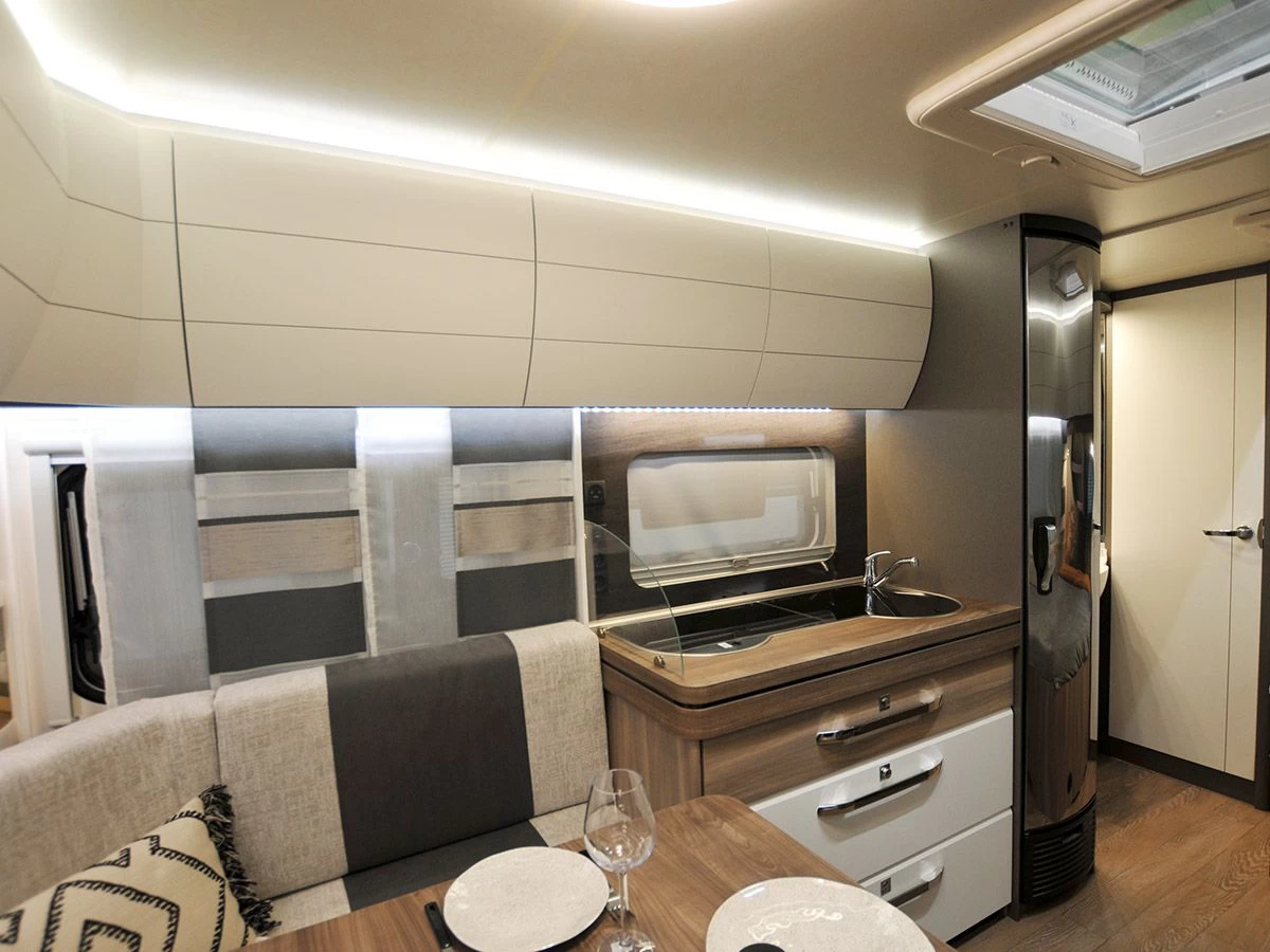 De moderne scandinavisch ademende combinatie van lichte kleuren en rechte lijnen wordt onderstreept door indrukwekkende LED verlichting.