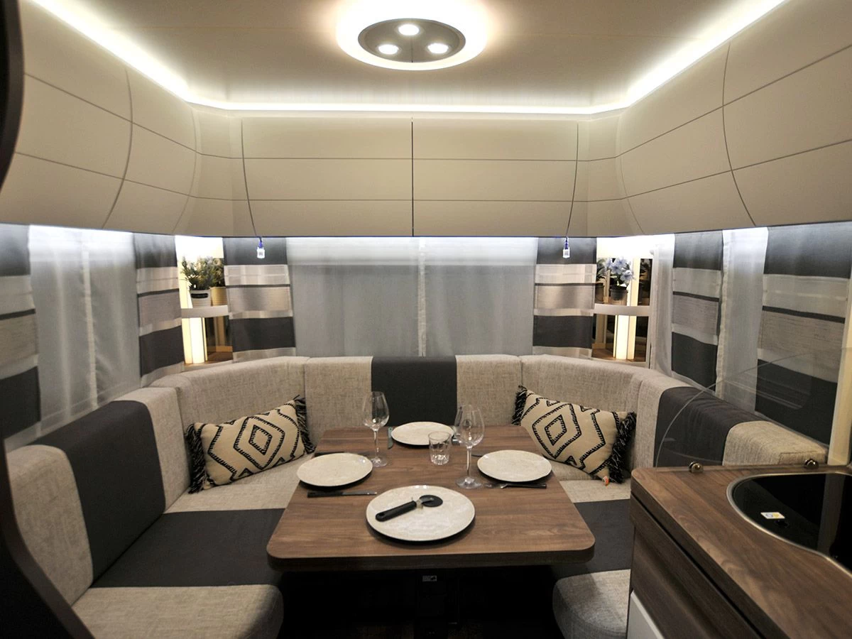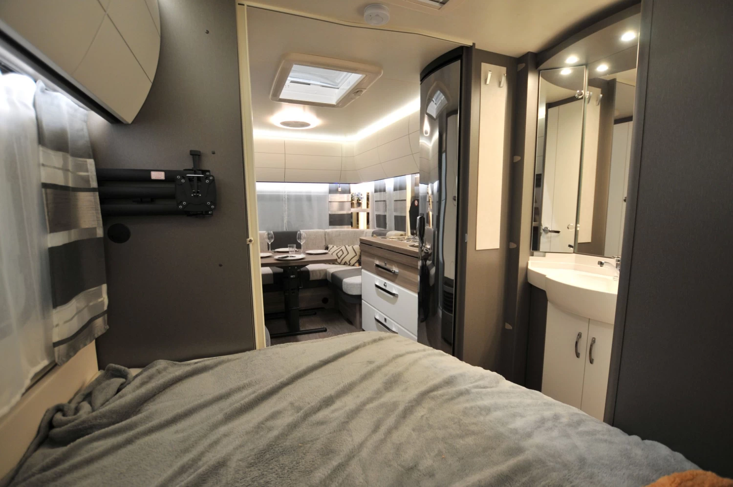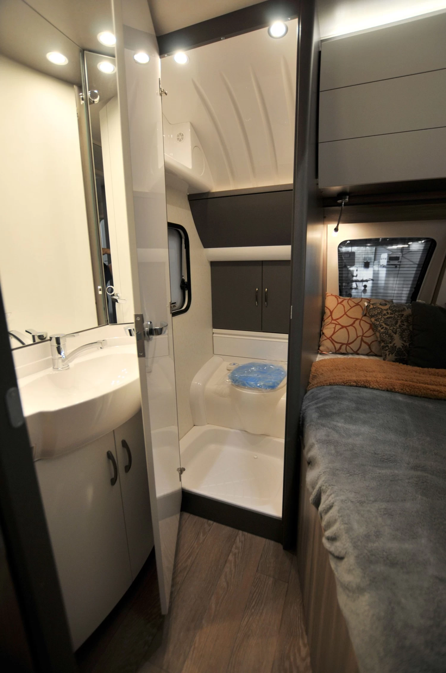 De moderne scandinavisch ademende combinatie van lichte kleuren en rechte lijnen wordt onderstreept door indrukwekkende LED verlichting.