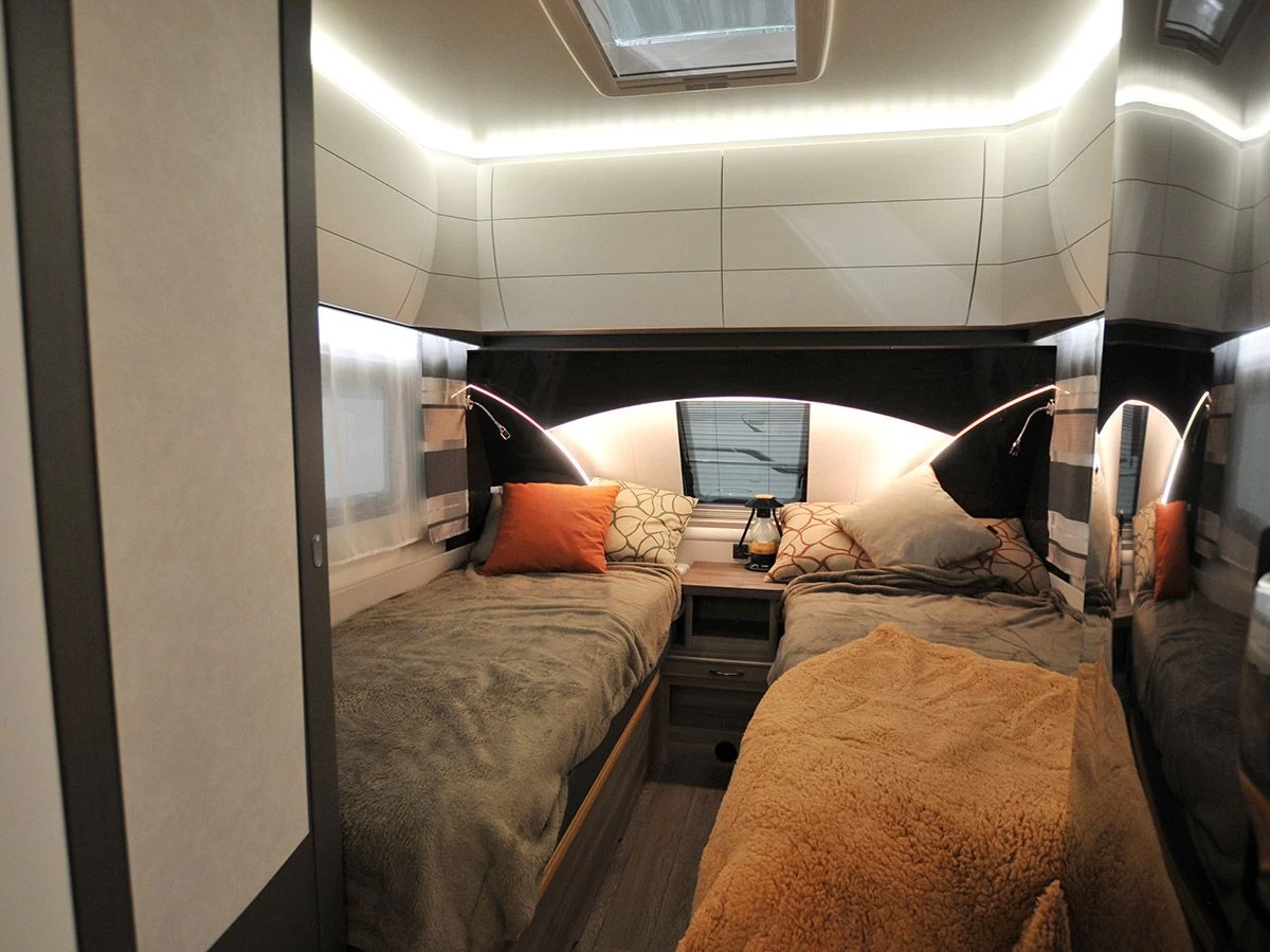 De moderne scandinavisch ademende combinatie van lichte kleuren en rechte lijnen wordt onderstreept door indrukwekkende LED verlichting.