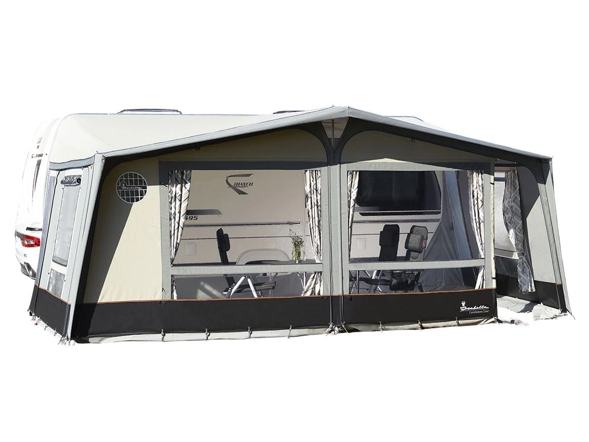 De Isabella Commodore Dawn is een 300 cm diepe caravanvoortent.