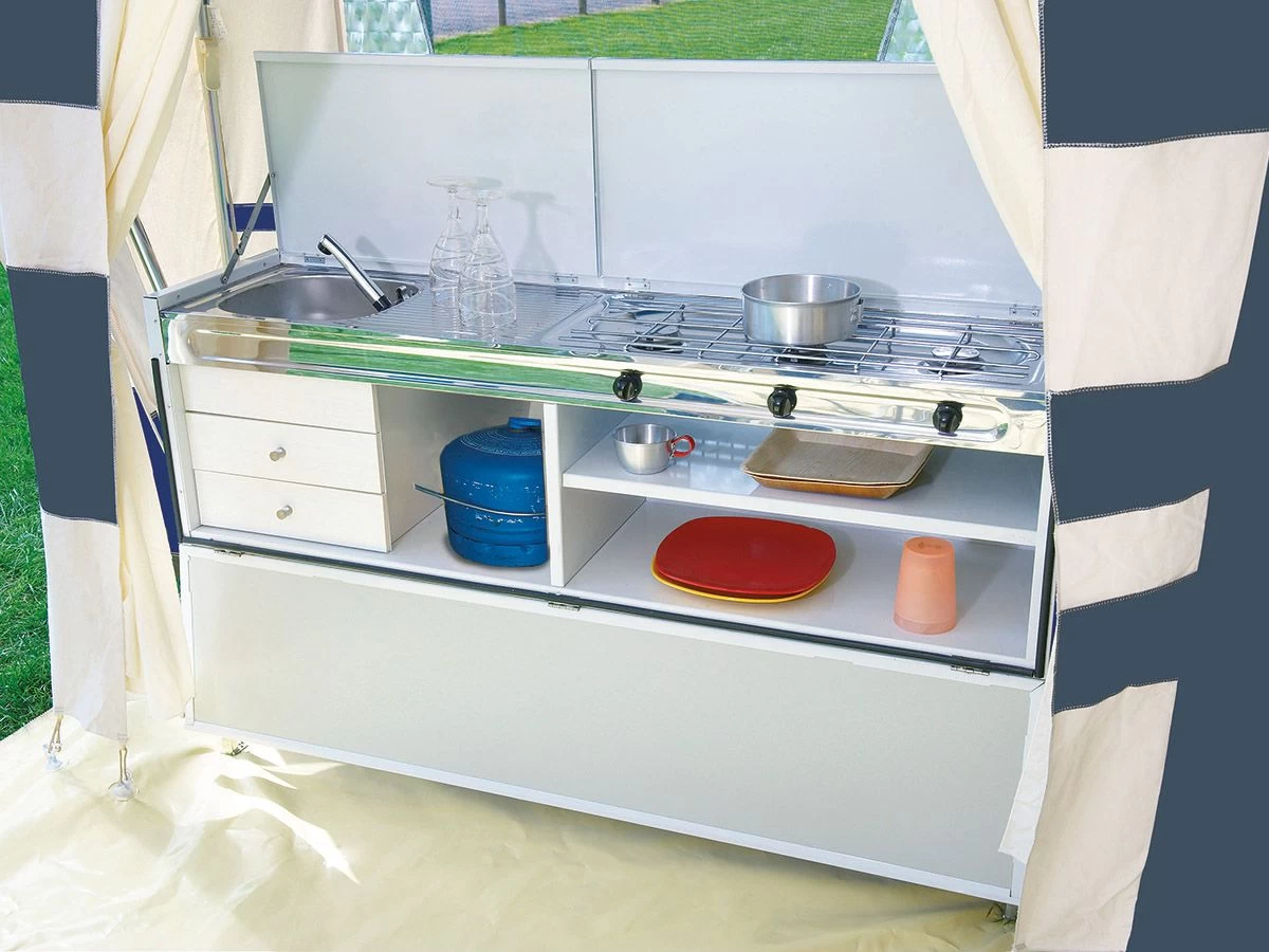 Wordt geleverd inclusief groot actiepakket: Neuswiel + klem, reservewiel + beugel, ondertent, schokbrekers, stormbandset, gasdrukregelaar met slang en kunststof siervelgdoppen.