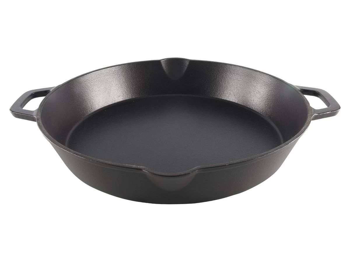 Deze XXL gietijzeren pan van Cast Iron is voorzien van twee handvaten en zowel als pan of als ovenschaal te gebruiken. Verder is de pan voorzien van twee tuitjes waardoor kookvocht of saus makkelijk afgegoten kan worden.