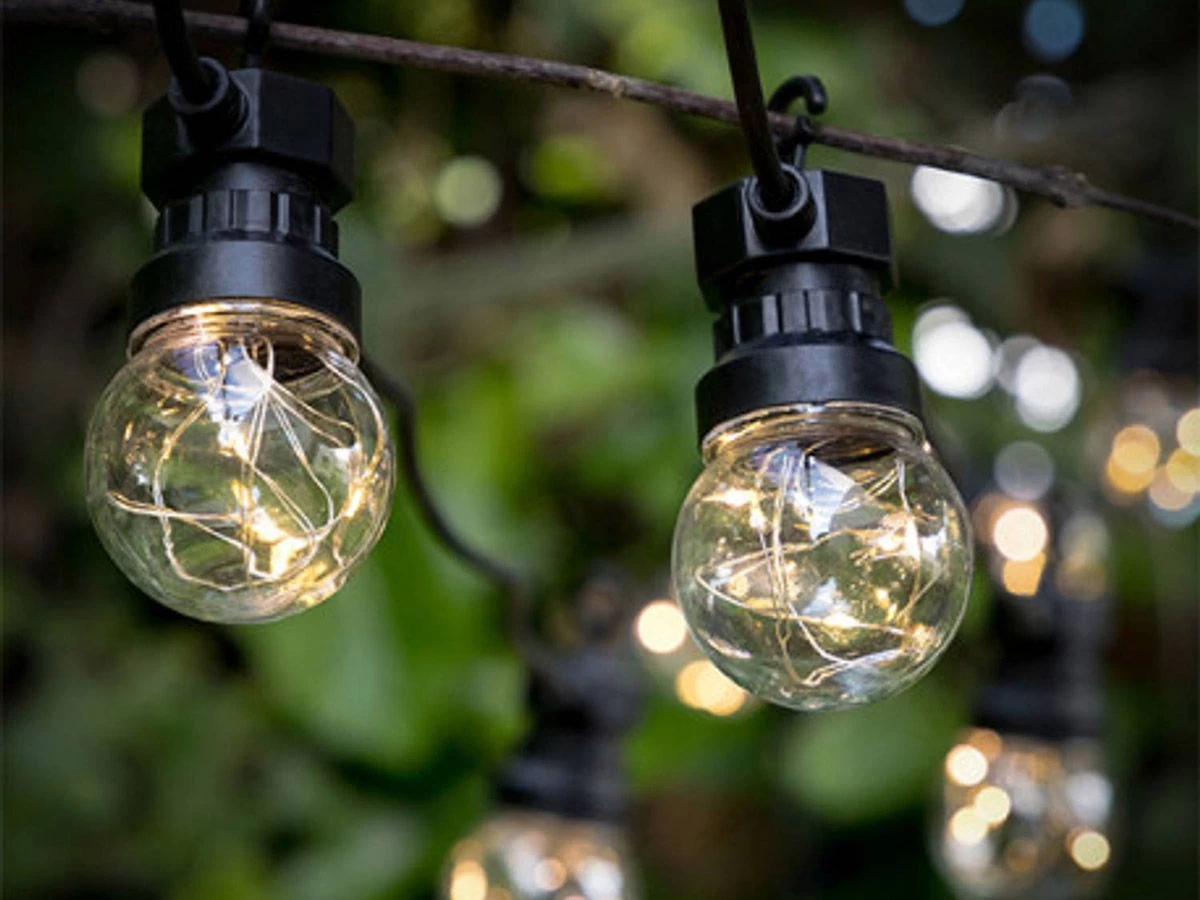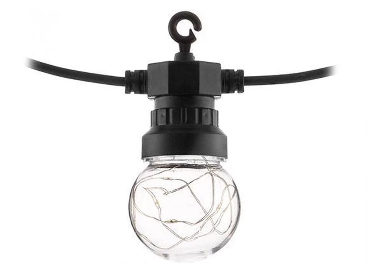 Deze verlichting ziet eruit als een prikkabel maar elk peertje is voorzien van 5 kleine LED lampjes die warm wit licht geven. De lampjes zijn voorzien van handige ophanghaakjes en werken op het netstroom. De totale lengte is 7,5 meter, waarvan 4,5 meter voorzien is van 10 lampenbollen. De lampjes zijn geschikt voor binnen en buiten en hebben een diameter van ongeveer 5 cm! Als een lampje defect raakt, blijven de andere lampen branden. De LED-lampjes zijn niet vervangbaar.