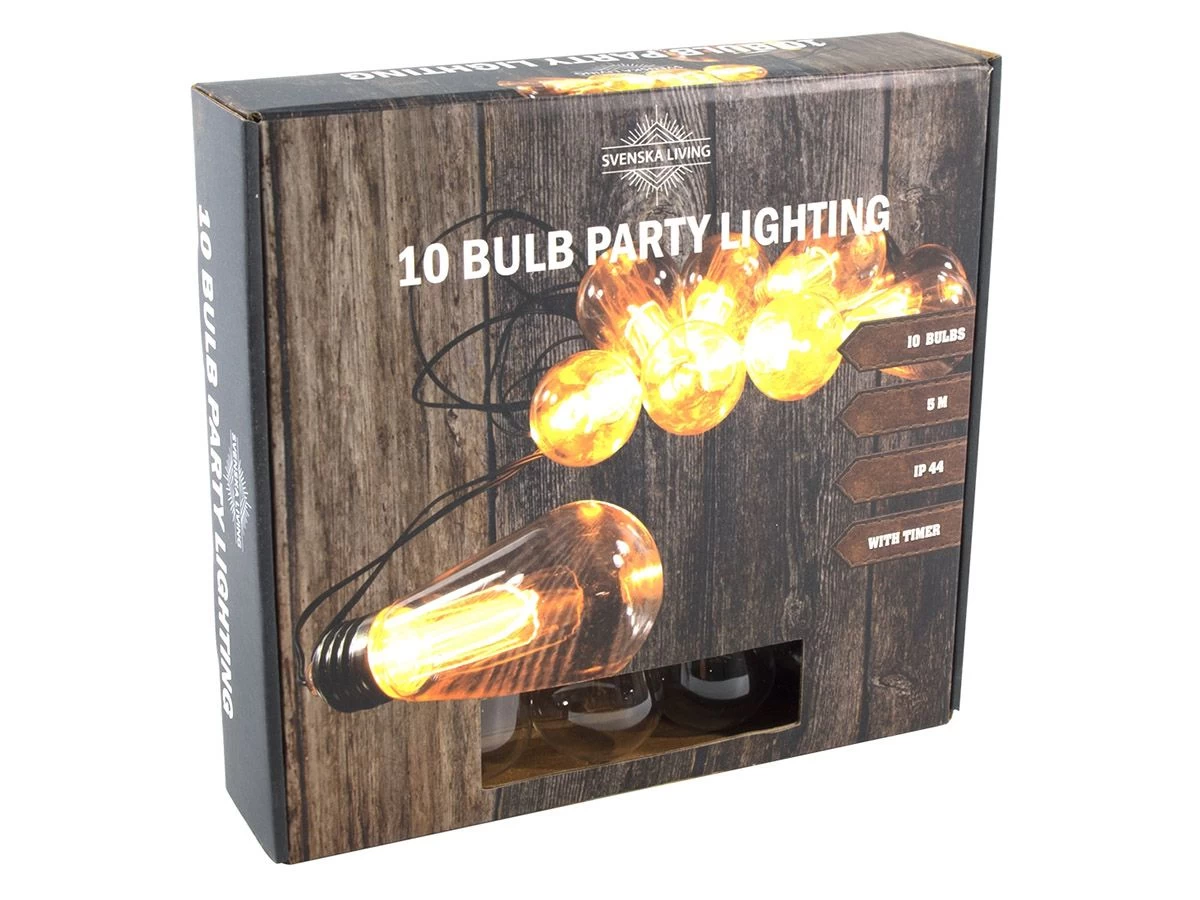 De 10 lampjes zitten verdeeld over een kabellengte van 5 meter met daaraan een voedingskabel van 3 meter. Zo heb je lengte genoeg om de lampjes mooi op te hangen. Deze lichtslinger is voorzien van een timer waarmee de lampjes na 6 of 18 uur vanzelf uit gaan.