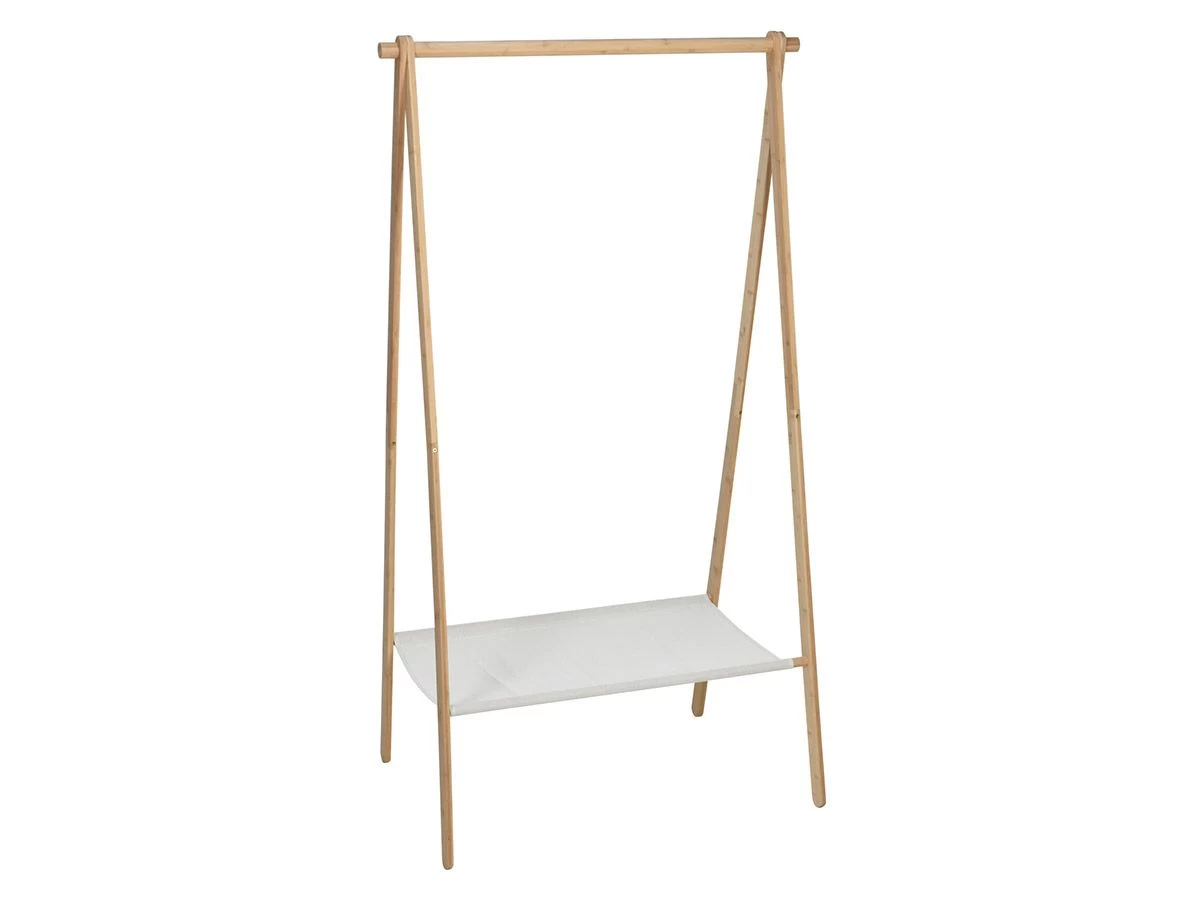 Het kledingrek is gemaakt van bamboe en heeft een witte katoenen bekleding. Het rek heeft een afmeting van 86 x 57 x 155 cm. Door het lichte gewicht is het kledingrek eenvoudig te verplaatsen.