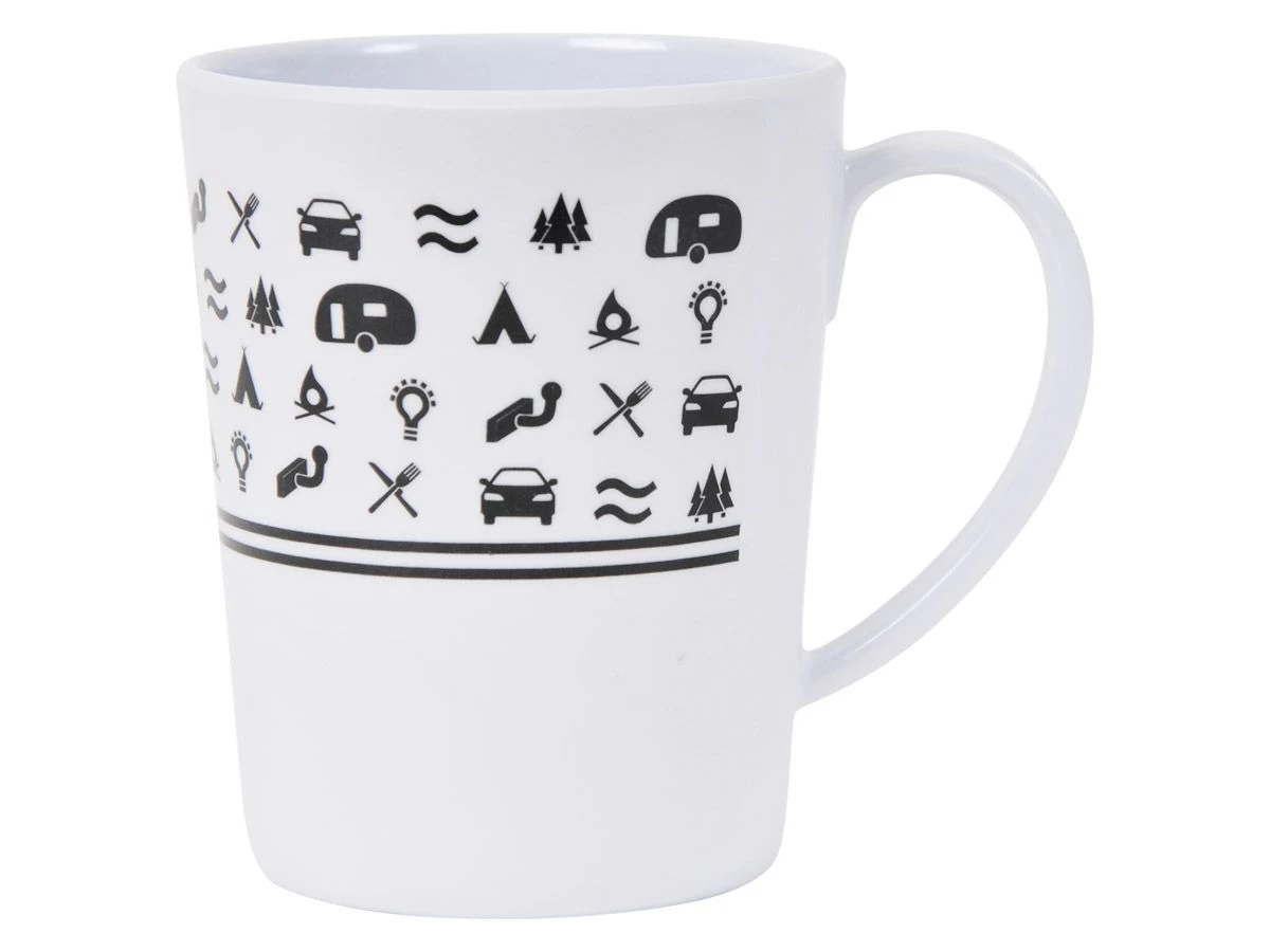 Ben jij een echte kampeer fan? Dan mag dit mooie camping servies van Obelink niet ontbreken in jouw campinguitrusting! Dankzij de witte kleur en de zwarte opdruk is deze set goed te combineren met ander servies en bestek.