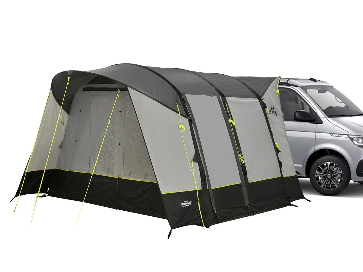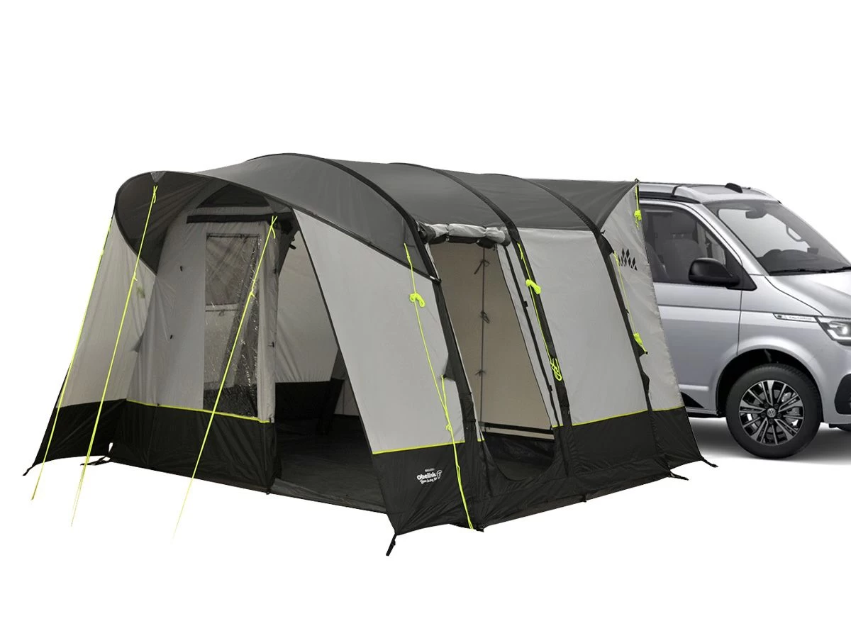 Deze bustent heeft een leefruimte van maar liefst 300 x 320 centimeter, een stuk ruimer dan de meeste andere busvoortenten. Bij wat minder weer kun je dus probleemloos binnen zitten en hoef je niet bang te zijn dat je bij elkaar op schoot moet zitten.