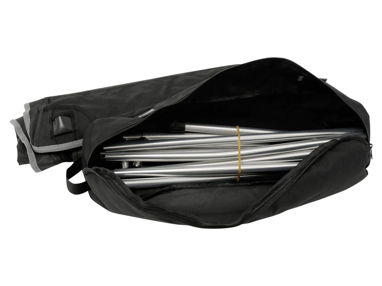 De Obelink Ultra Light High chair is heel eenvoudig in elkaar te zetten. Het compacte pakketje bestaat uit een polyester zitting en een frame van aluminium. De onderdelen van het frame zitten aan elkaar verbonden met elastieken. Zo weet je precies hoe de stoel in elkaar gezet moet worden en kun je geen onderdelen kwijt raken.