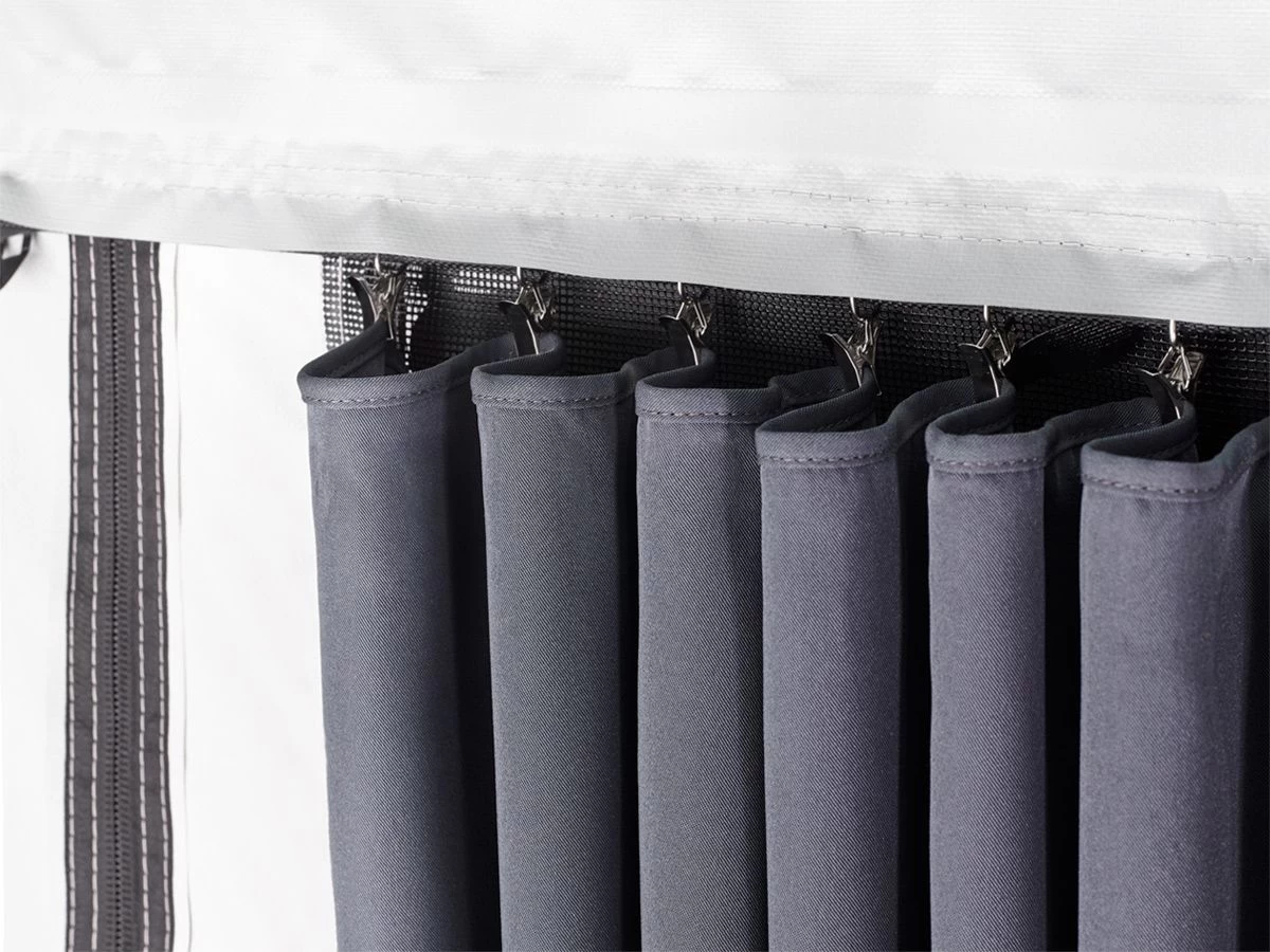 De Thule Gordijnensets worden geleverd zonder gordijnrunners, deze zijn al meegeleverd bij de zijwanden en voorwand van de Thule Residence G3 of Thule Panorama.