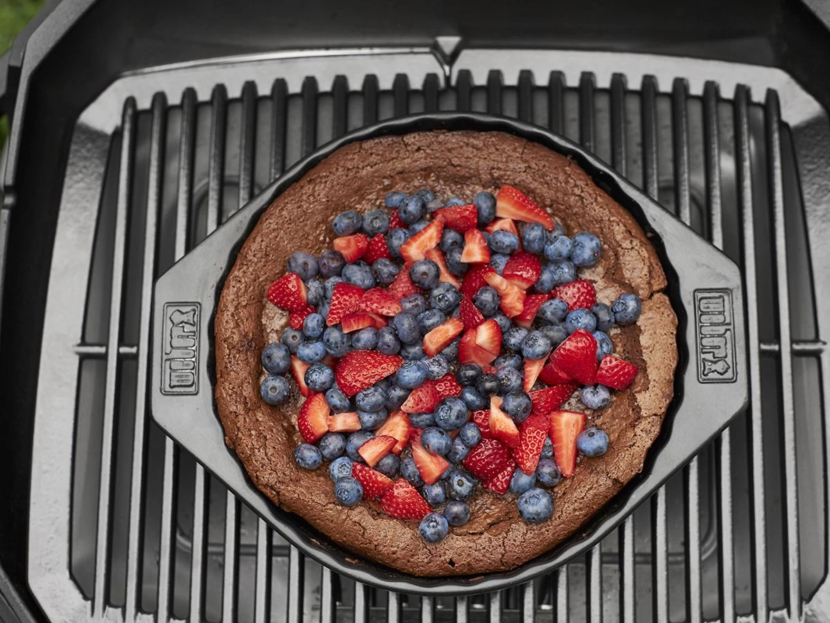 Wist je dat je bijna alles op de barbecue kunt klaarmaken? Met deze keramische bakvorm van Weber bak je de heerlijkste taarten, cakes en zelfs desserts! Dankzij het gladde oppervlak plakt de inhoud niet aan het keramiek en het grote handvat is handig om het gerecht gemakkelijk van de barbecue naar de keuken te brengen.