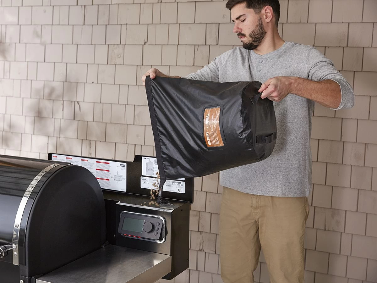 Maak je vaak gebruik van houtpellets en zoek je een goede manier om de pellets op te bergen? Met de pellet opbergzak van Weber kun je tot wel 9 kg eenvoudig droog opbergen. Door de handige greep onderaan de opbergzak kun je de pellets eenvoudig in het reservoir van de barbecue gieten.